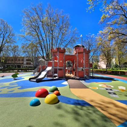 Puis, on passe une heure à la structure de jeux pour enfants et c'est le moment détente sur l'un des bancs en prenant un livre dans la boîte à lire juste à côté. Elle ne passe pas inaperçue avec sa forme de « cabine téléphonique anglaise » et son rouge flamboyant !